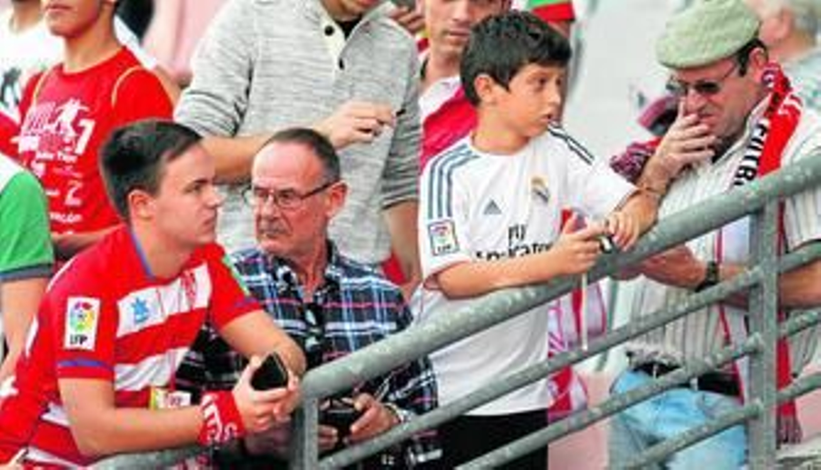 Algo similar debieron sentir los que se enfundaron la camisola mitad rojiblanca, mitad merengue. "Catetada" para unos, "algo simpático" para otros, no dejaban a casi nadie indiferente. Alguno que otro entonó la letra del himno del club antes sito en Recogidas 35 con ella puesta. Otros, en cambio, no escondían su predilección por el equipo de la capital del país. Animaban a los blancos "por coherencia", como Miguel Rodríguez. "Yo nunca antes animaba al Graná, ¿por qué lo voy a hacer ahora en Primera?", explicaba. "A mí no me gustan los que se han aficionado por moda".