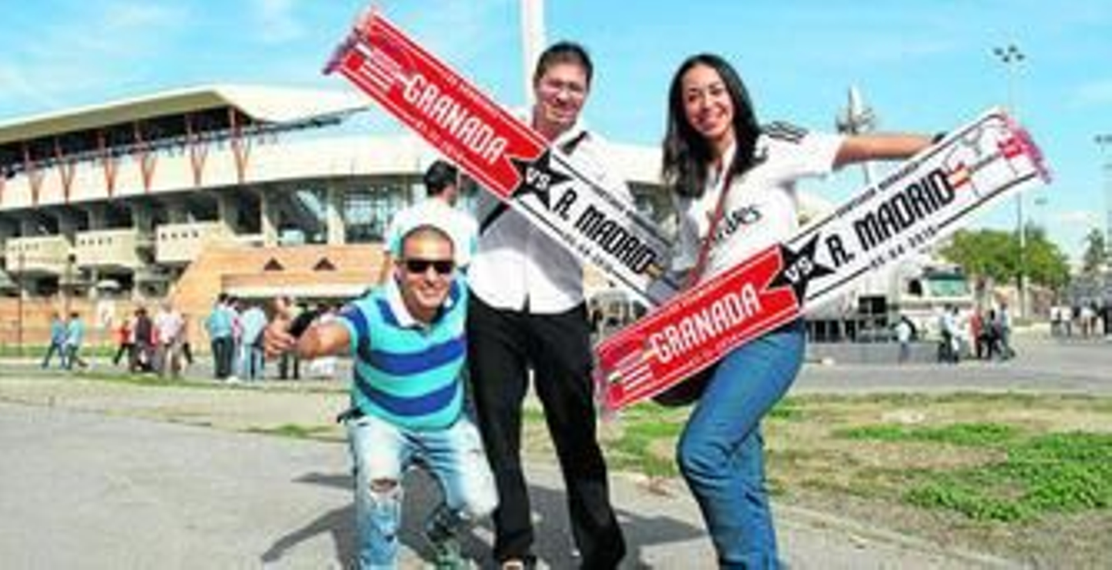 La visita del Real Madrid a la capital siempre es una prueba para medir a pie de calle tal nivel de granadinismo, el que respira la ciudad. Y ayer en feudo rojiblanco no faltaron emblemas de la entidad merengue. Camisetas, banderas, bufandas... Muchas de ellas, portadas por granadinos. No fue extraño encontrar familias completas camino al estadio en las que las zamarras de CR7 convivían con las rojiblancas horizontales. "Hoy tenemos el corazón dividido", decía Manuel Pérez. "Nos gustaría un empate pero, pase lo que pase, lo miraremos por el lado positivo", agregaba.