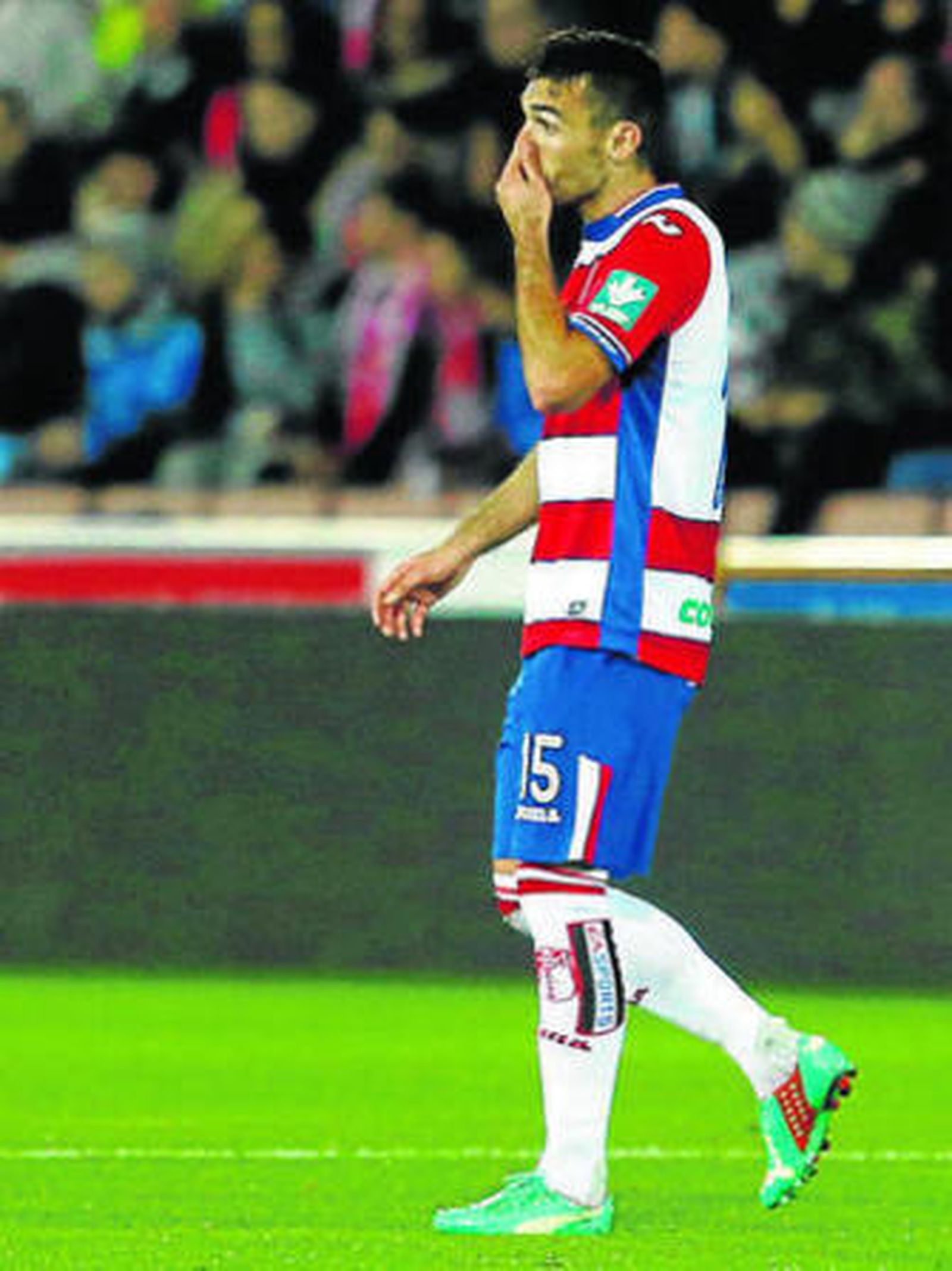 Como era previsible, el Granada tuvo muchos problemas con el balón en los pies. El Espanyol no se metió atrás, como sí hicieron otros equipos que visitaron Los Cármenes, pero el equipo estuvo demasiado espeso y poco fluido cuando de construir en ataque se trataba. La movilidad de El Arabi era casi lo único que daba opción de avanzar, con balones que en muchas ocasiones partían de los centrales, sin pasar por la media. Rochina estuvo demasiado anclado en su banda, yéndose en pocas ocasiones al centro, y los laterales apenas profundizaron.