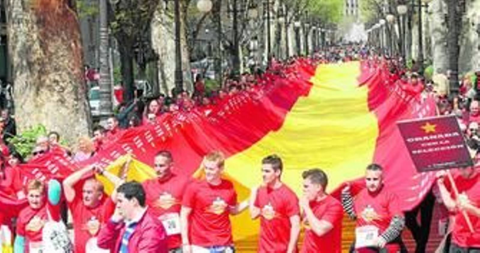 El corazón de Granada palpitó ayer en rojo y gualda. La mañana amaneció primaveral y ardiente, con una temperatura más apropiada para el Día de la Cruz que para un viernes más de finales de marzo. Una suave brisa hacía más agradable el paseo y movía las banderas nacionales que, de repente, han vuelto a los balcones y ventanas de los edificios de la ciudad. El tiempo parecía haberse echado para atrás en un rebobinado que se detenía en el glorioso julio de 2010.