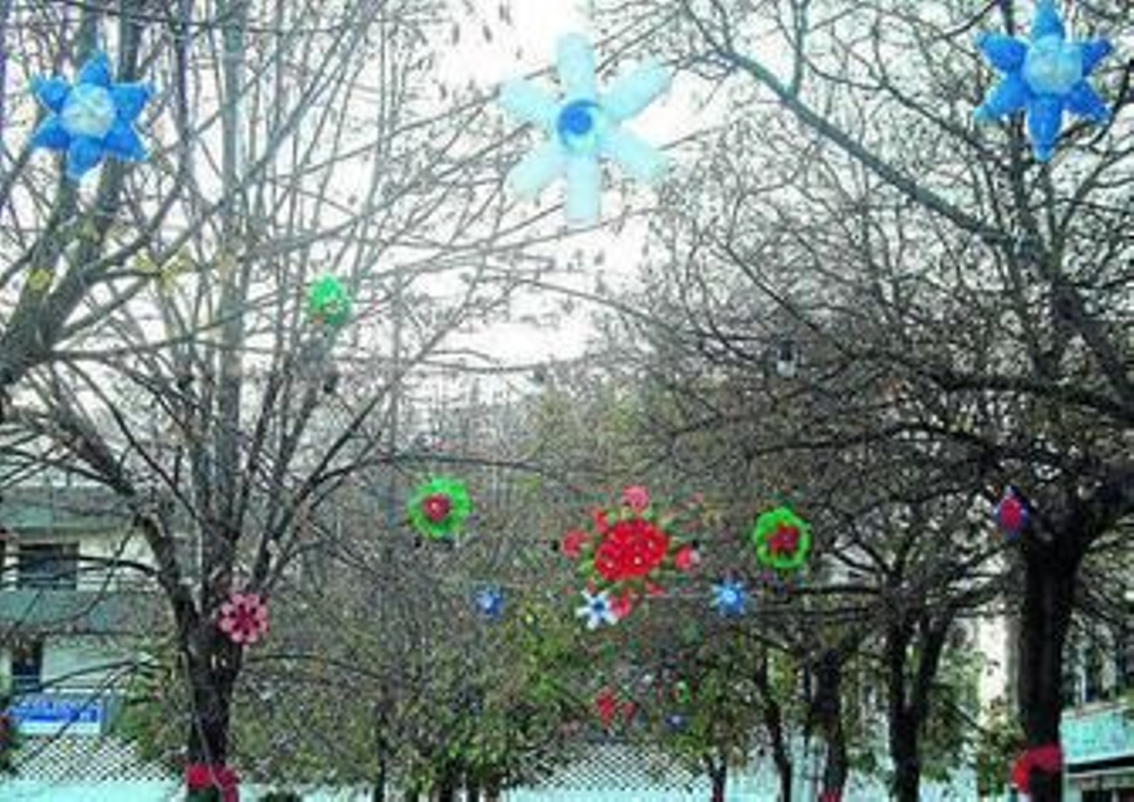 Para la elaboración de los adornos han usado materiales como vasos y botellas de plástico, bricks, tapones y todo de tipo de recipientes que han ido amoldando para adaptarlos y poder lucirlos en el entorno de esta zona del popular barrio San Francisco. Una de las comerciantes del lugar, Encarni Murillo, ha sido la promotora y la persona que tuvo la idea de adornar las plazas del Paseo Público de Narváez y darles un ambiente navideño. A partir de ahí, mantuvieron una reunión con los vecinos y encontraron una magnífica respuesta en todos, estableciéndose dos grupos de trabajo que han estado confeccionando los adornos tras conseguir recopilar una gran cantidad de material reciclado, contando también con la ayuda de los comerciantes, que han aportado donativos para poder adquirir el resto del material.