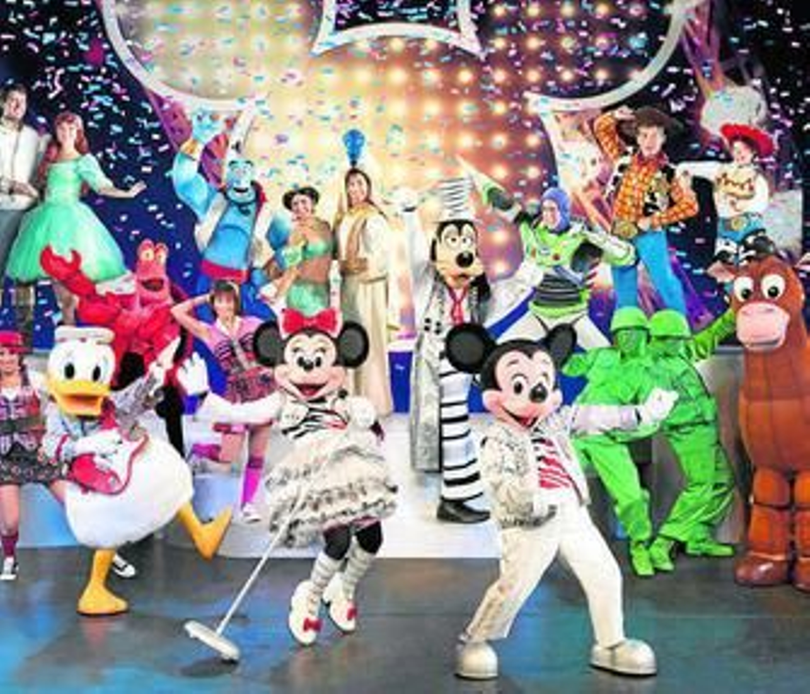 El recorrido empieza de la mano de Mickey Mouse, transportados a un nuevo mundo de movimientos de hip hop, acrobacias vertiginosas, alfombras voladoras y transformaciones mágicas con Aladdín, Yasmín y el Genio. Bajo el agua, el público se encontrará con Ariel, Sebastián y sus amigos acuáticos para bailar a ritmo de Reggae, y moverá el esqueleto mientras Woody, Buzz y Jessi les enseñan a bailar al estilo rodeo.