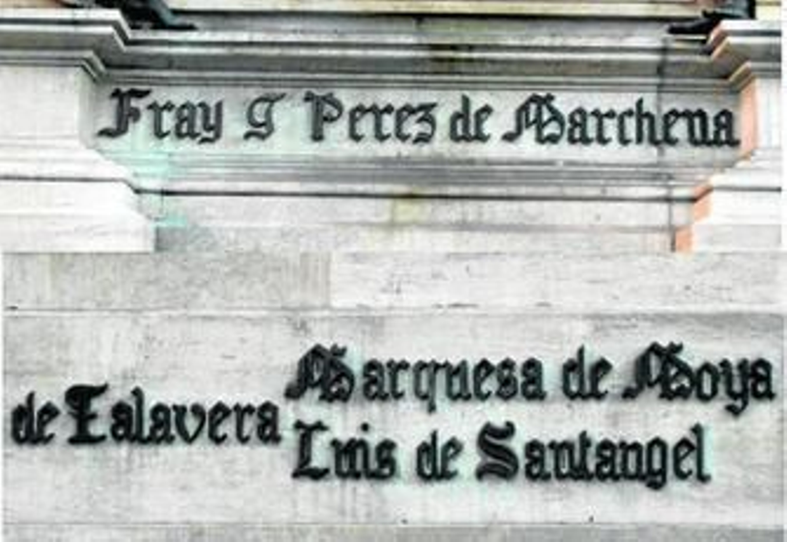Pero esto no es nuevo. Cuando el ilustre escultor valenciano Mariano Benlliure hizo el monumento a Isabel la Católica y Colón en 1892, para conmemorar el IV Centenario del Descubrimiento, también nos dejó algún error y algunas significativas omisiones en la leyenda del pedestal. Y es extraño porque Benlliure debía conocer quiénes fueron los verdaderos consejeros de Colón y de la reina Isabel y los que realmente aportaron el principal consejo, el dinero, en aquella aventura trasatlántica cuyas capitulaciones y conversaciones entre ambos protagonistas pretende resaltar el escultor.