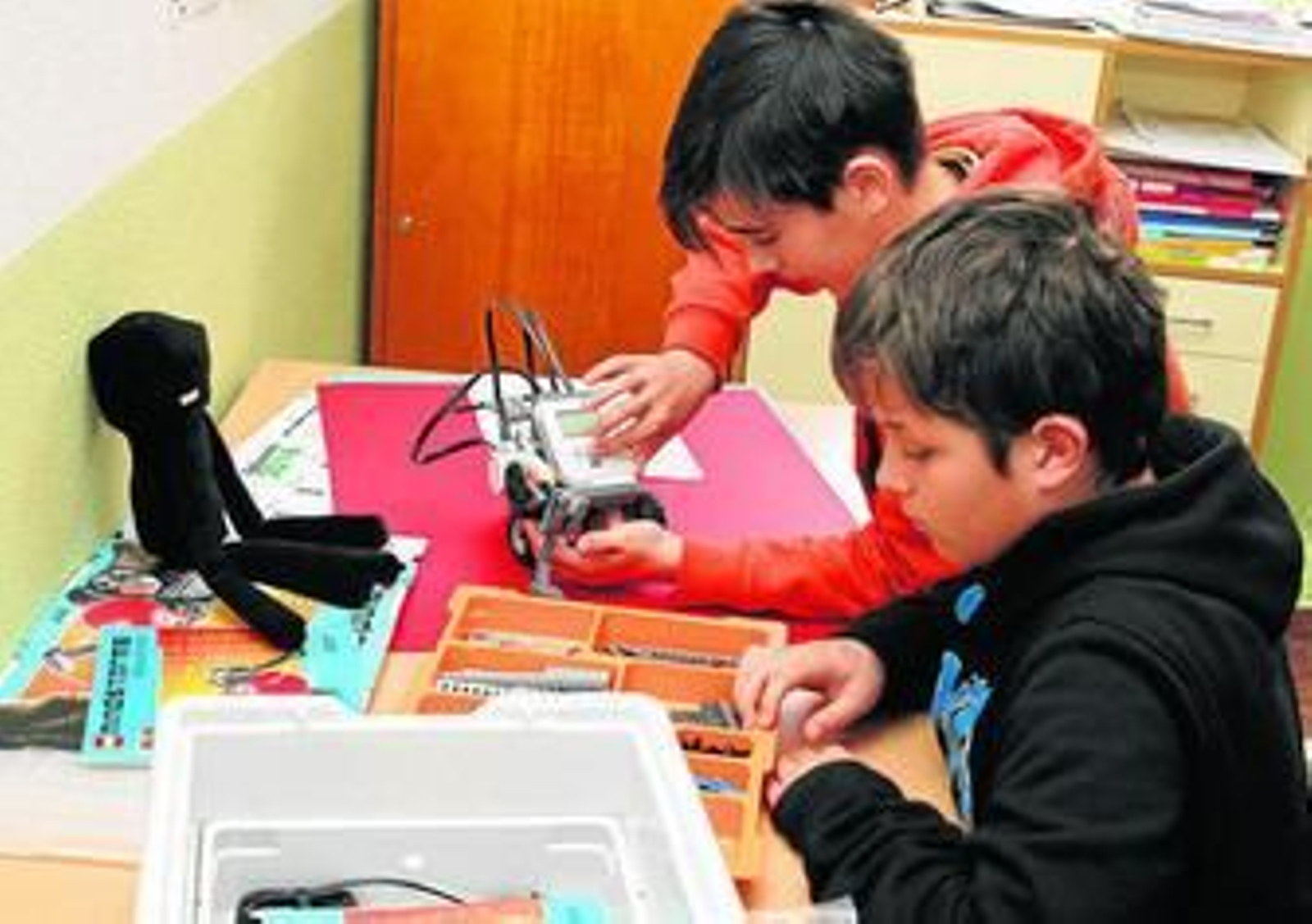 Celia espera en la puerta de clase. "Ayer acabamos con el póster de valores". Una compañera ataca ferozmente su bocadillo. Otros chavales entran y salen apresuradamente, corretean por el pasillo. Es la hora del recreo pero para estos once alumnos del Colegio Público Sierra Elvira hay que trabajar. Programan en equipo un robot, con el que participarán el próximo fin de semana en la fase provincial de la First Lego League (FLL), un torneo educativo promovido por la Fundación Scientia que, en Granada, cuenta con el patrocinio del Parque Tecnológico de la Salud (PTS), que paga los más de 300 euros de la inscripción. El objetivo, desarrollar una máquina capaz de enfrentarse a un desafío, planteado ex profeso para los alumnos, y, de camino, aprender a trabajar en equipo, el valor del debate y cómo afrontar la toma de decisiones. Como coordinadores del grupo están los docentes Juan Miguel Nievas Muñoz y Juan José Porcel, que colabora puntualmente en el desarrollo del proyecto.
