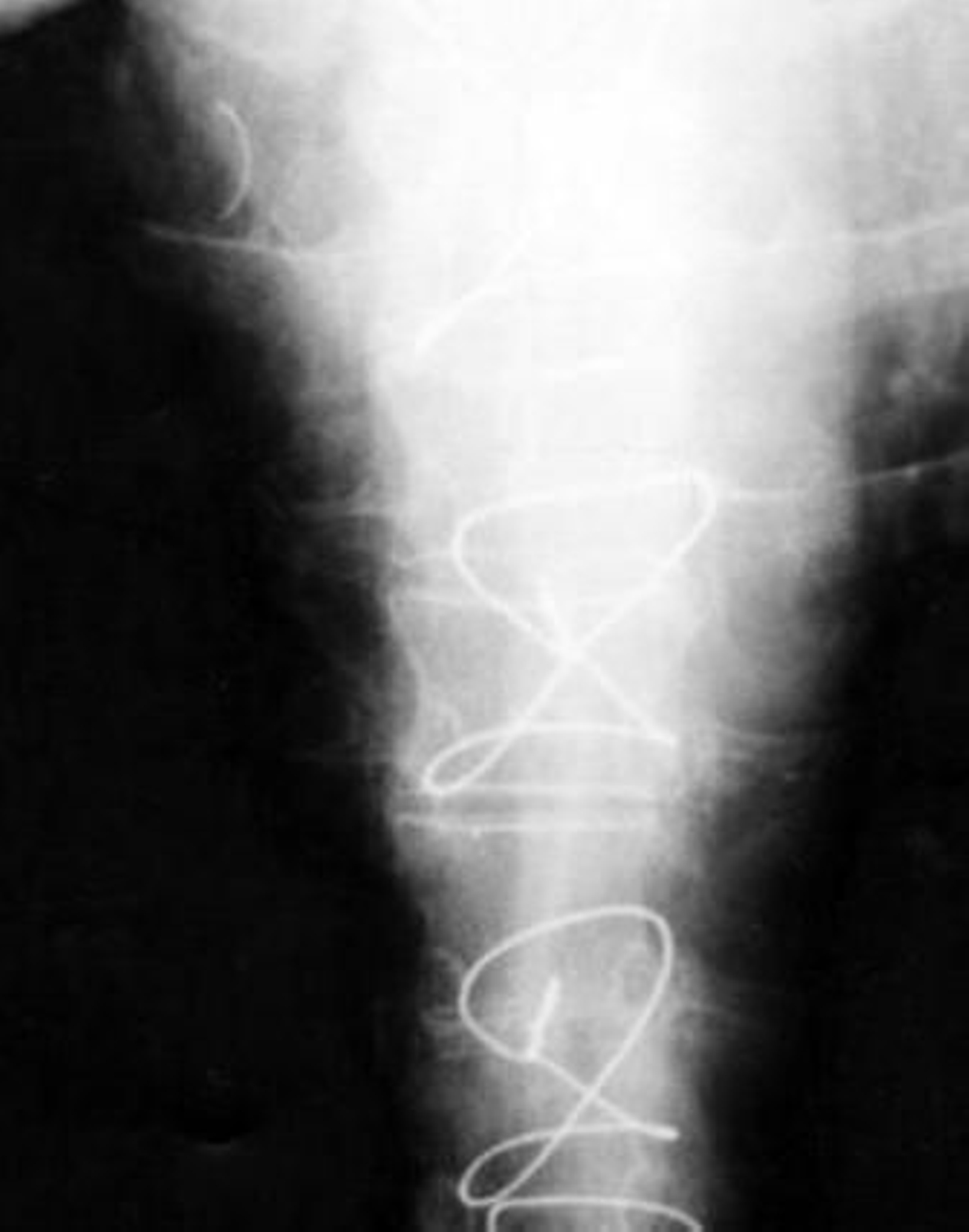 Tras una primera revisión en abril de 2004, en la que no se vio nada raro, la paciente, aún con dolores y malestar, acudió en mayo a Urgencias del Hospital de la Axarquía -en Málaga-, donde, con dolor torácico punzante, le realizan pruebas radiológicas en las que se "evidencia imagen curvilínea de densidad metálica en localización de aurículo derecha". La aguja de sutura.