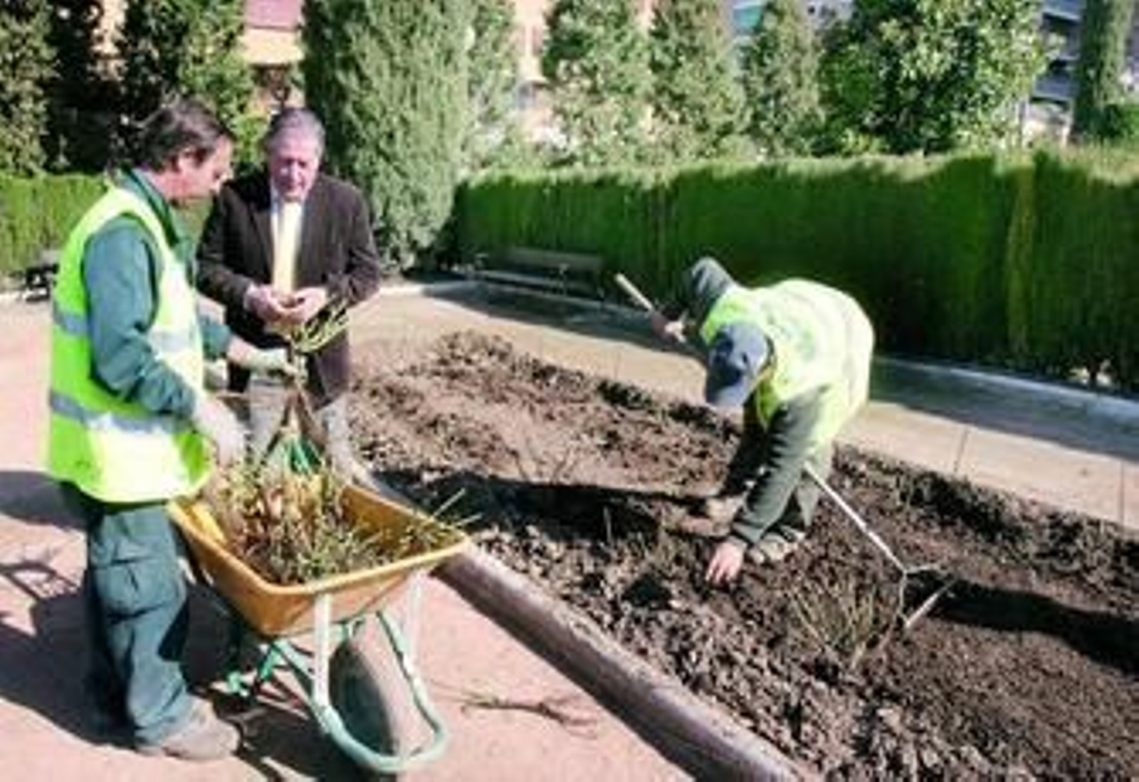 El concejal de Mantenimiento, Vicente Aguilera, visitó ayer la renovación de rosales que se está llevando en el parque. El estado del suelo y la excesiva densidad de la plantación inicial ha ido provocando el progresivo deterioro de las plantas ante lo que se decidió hace algunos meses llevar a cabo la renovación del rosal.