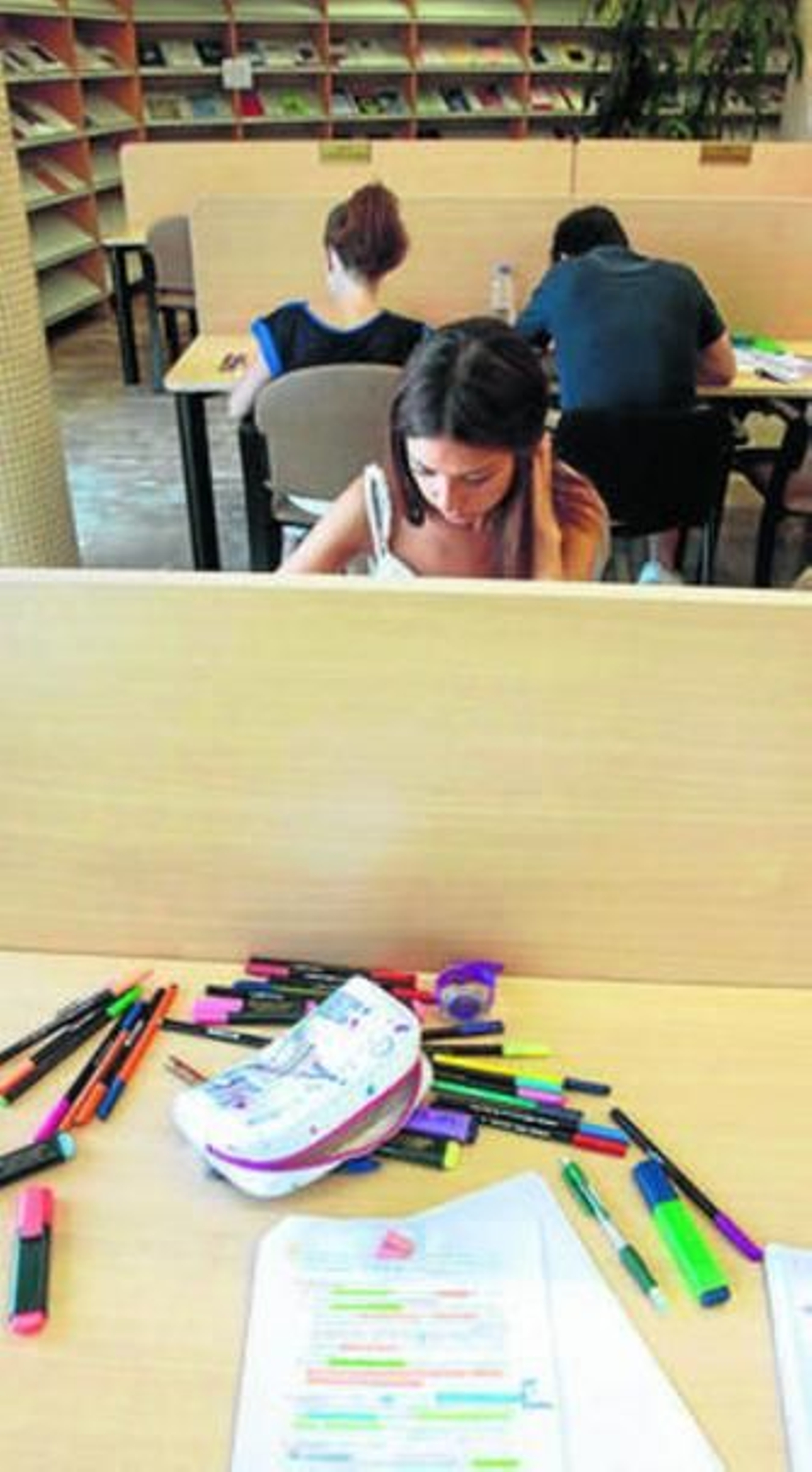 Entre el ir y venir de estudiantes que llegan, se van o hacen un descanso en su mañana de estudio en la Biblioteca Biosanitaria de Granada, también están Alberto Sánchez y María Ángeles López, estudiantes de Caminos, Canales y Puertos. "Yo tengo muchísimas manías. Por ejemplo siempre escribo con el mismo bolígrafo de propaganda de la librería Fleming. Es más, cuando se le acaba la tinta, le pongo recambios", asegura Sánchez que además no soporta el desorden en la mesa en la que está realizando ejercicios de cara al examen. "No puedo escuchar ningún ruido y que todo esté en su sitio es fundamental para concentrarme", explica. Su compañera María Ángeles López confiesa que le sucede lo mismo. "En nuestra carrera tenemos muchísimos rotuladores y necesito que todo esté en su sitio", apunta López que asegura no poder ir a los exámenes sin su púa de guitarra. "La llevo siempre en la cartera, y yo no soy supersticiosa, pero si la llevo me siento más cómoda", comenta.