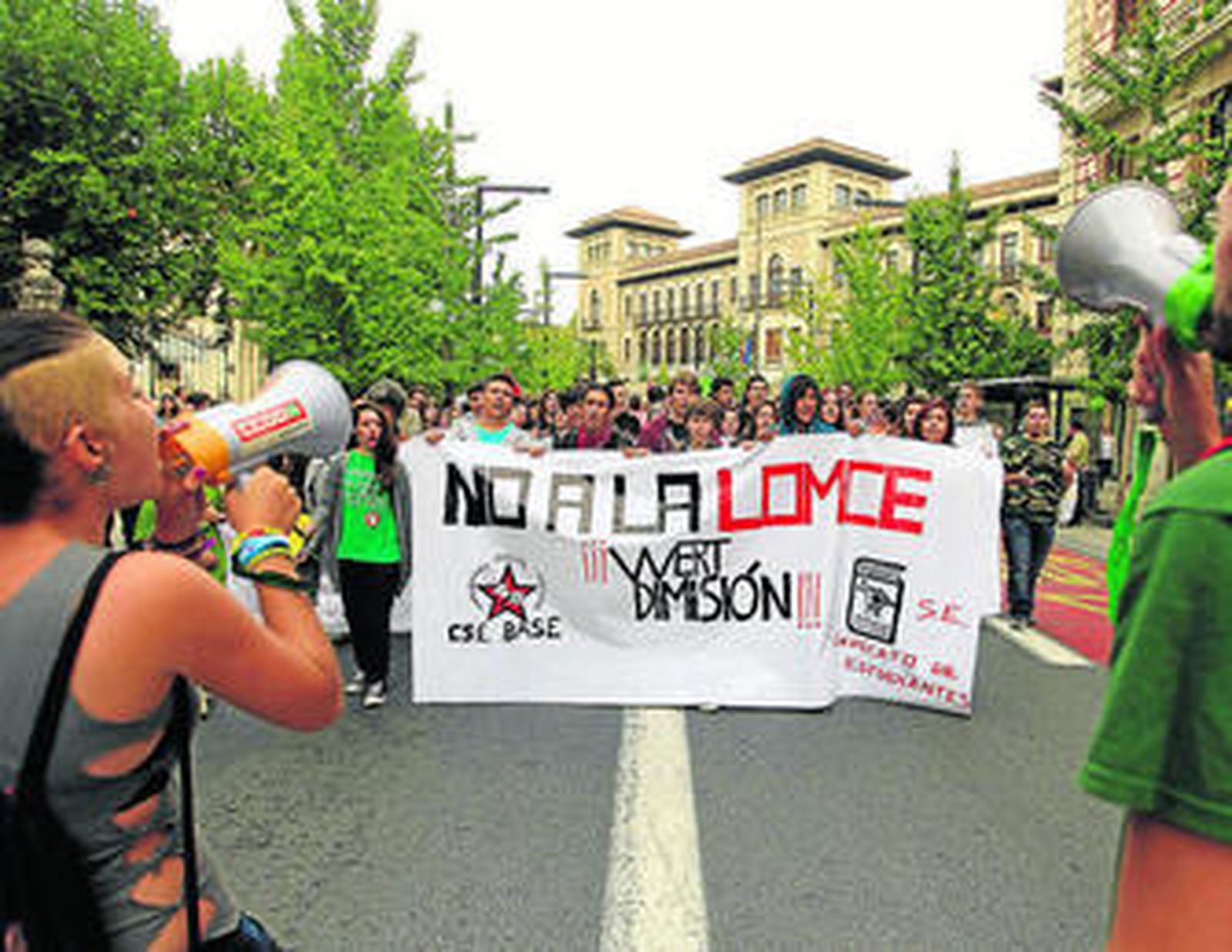 Entre las reivindicaciones que hoy están detrás del paro educativo y las dos manifestaciones previstas están el rechazo a la Ley Orgánica para la Mejora de la Calidad Educativa (Lomce), conocida como ley Wert, que hoy precisamente será sometida a votación en el Senado, un trámite previo a su aprobación definitiva. Por otra parte, los estudiantes también se manifestarán contra la subida de precios públicos, los recortes en becas, la situación de los becarios del programa Erasmus o la exigencia de acreditar un nivel de inglés B1 "a unos precios desorbitados", según indican desde la Coordinadora Sindical Estudiantil, uno de los sindicatos promotores del paro de hoy. Otras de las exigencias del colectivo son la regulación de los paros académicos en la UGR y que ningún estudiante sin recursos sea expulsado de la Universidad, además de la puesta en marcha de un sistema de pago fraccionado de la matrícula en que "no haya intermediarios", en referencia al acuerdo alcanzado por la UGR con varias entidades para permitir el abono en hasta ocho plazos.