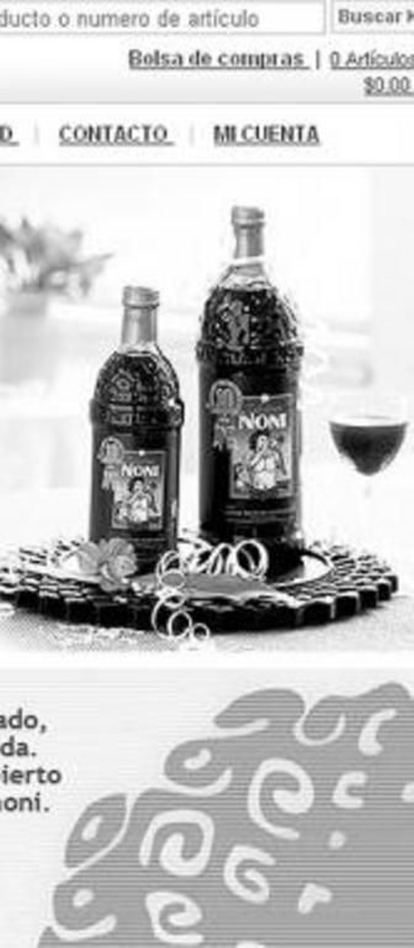 El producto se comercializa en botellas de cristal de un litro en las que figura "Jugo de Noni Tahitian Noni".