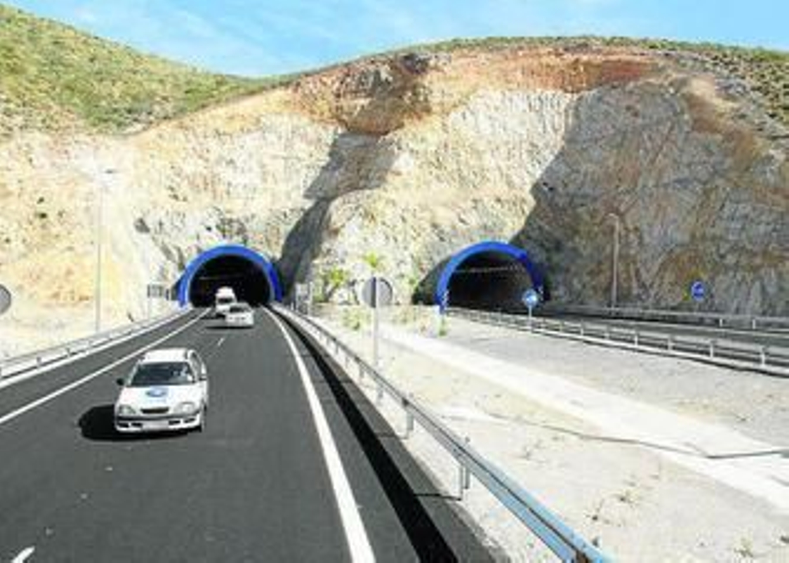 La porción de autovía estrenada ayer atraviesa los términos municipales de Motril, Lújar y Gualchos-Castell de Ferro. A lo largo de los 10 kilómetros que tiene se puede apreciar un paisaje en el que los acantilados y los invernaderos son una constante. Debido al escarpado terreno, ha sido necesaria la construcción de tres viaductos (Torilejo de 184 metros de longitud, Zacatín de 261 y Rambla de Lújar de 362) y el túnel de Gualchos con 339 metros en la calzada que linda con el monte y 250 metros la que da hacia la playa. Además, se ha acometido un paso superior y cinco inferiores, 39 drenajes transversales y un enlace. En su explicación, el director de Obra, Francisco Ruiz, señaló que "todos los materiales de traza se han reciclado en la propia obra". Los únicos elementos que han sido importados a la zona han sido el hierro, cemento y betún. Al margen de esta terna, "todo se ha fabricado aquí", indicó el ingeniero perteneciente al Ministerio de Fomento.
