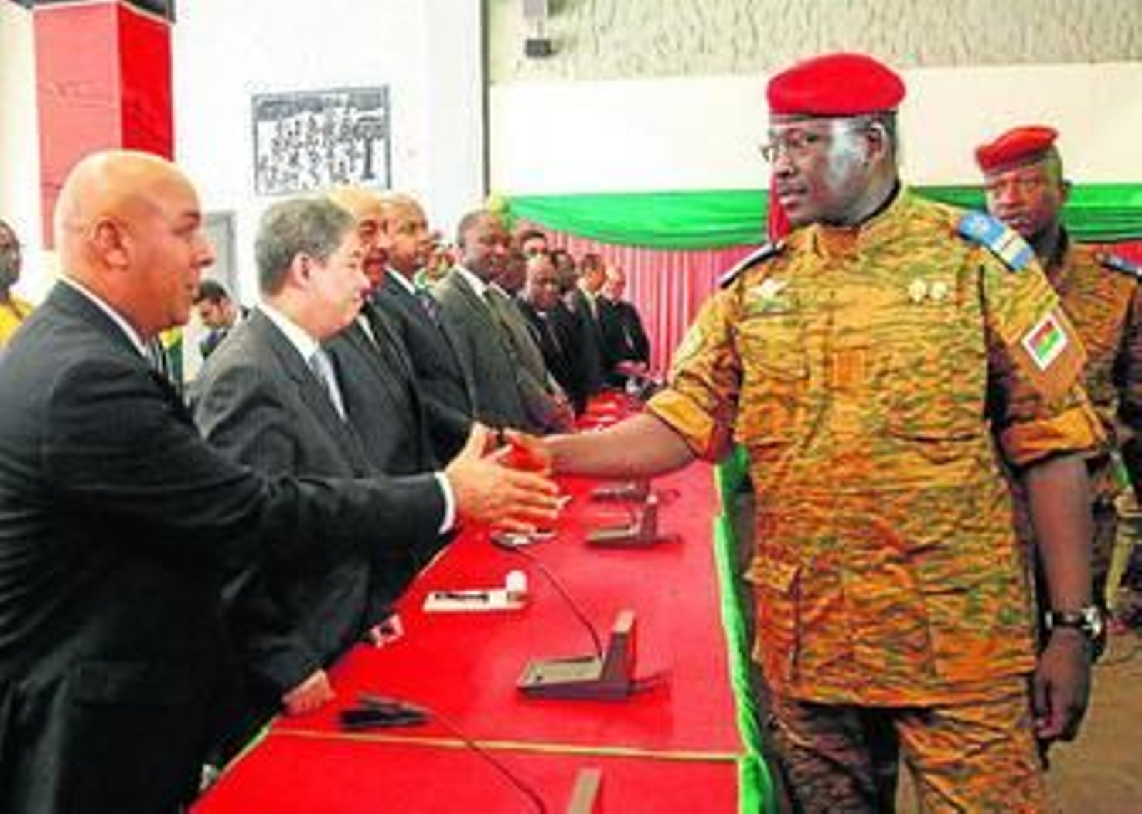 El jefe de Estado de Burkina Faso, Isaac Zida, en una reunión con miembros del cuerpo diplomático.