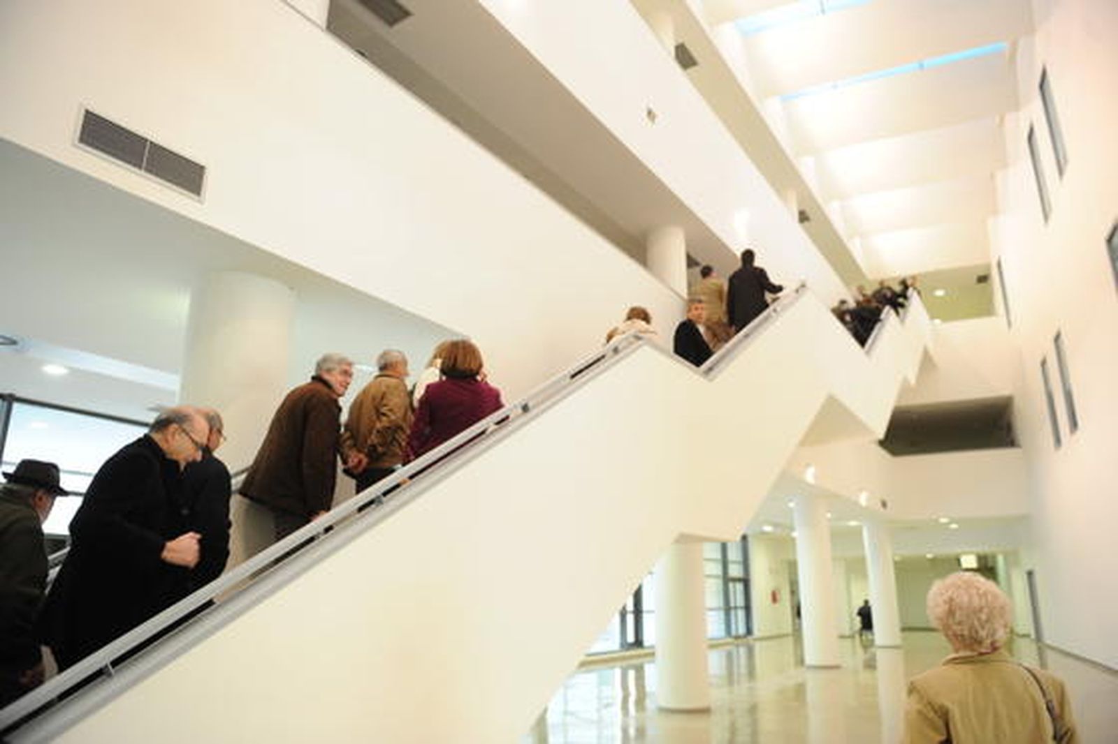 Tras un primer paseo por la zona exterior, ya acondicionada con jardinería y bancos, entraron al hospital, donde ahora destacan los espacios diáfanos, el brillo de sus materiales y los colores que le han imprimido a las distintas zonas. Salas de espera, pasillos, consultas, habitaciones, zona de recepción, escaleras, ascensores, patios interiores... Todo listo para la actividad aunque dentro de un tiempo que todavía no está definido del todo -final de 2012, principios de 2013 si el calendario no cambia con el resultado electoral-. Cuando abra, el inmenso edificio, con una superficie construida de 120.000 metros cuadrados y ocho plantas de altura que tiene el propósito de convertirse en uno de los hospitales más modernos de España, abandonará el vacío y la soledad actuales para iniciar una actividad que ya no parará nunca. Porque un hospital funciona de manera incesante las 24 horas durante todos los días del año.