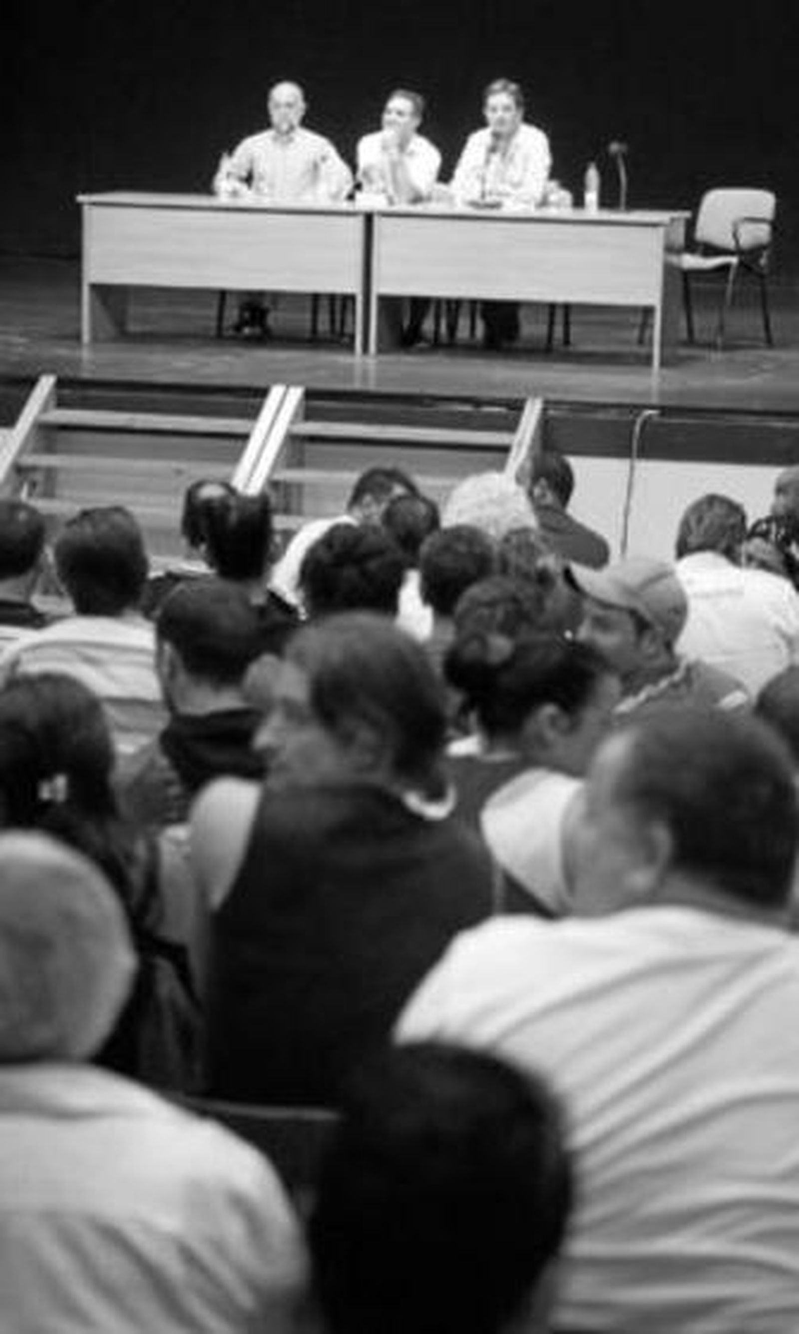 Aplausos y más aplausos. Y luego, un sinfín de preguntas: "¿cómo se mira para hacer poesía?", "¿cómo se comparte su vida con otra escritora?" [por Almudena Grandes], "¿tiene alguna musa?" o "¿por qué es más fácil escribir cuando uno está mal?".