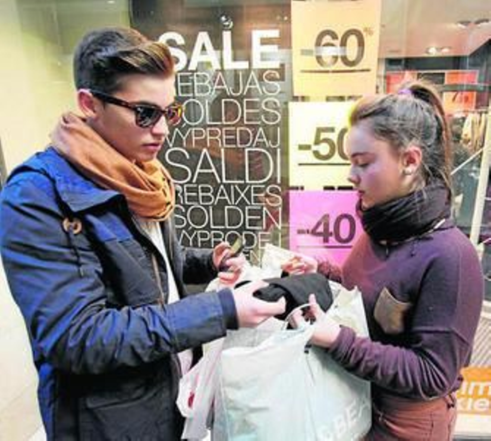 Pero son los más jóvenes los que ven en las rebajas una ocasión para surtirse de ropa de invierno con el dinero recaudado en Reyes. En algunos casos acuden acompañadas de sus padres, que acaban comprándoles algún capricho. Pero ayer era más frecuente ver a las pandillas de amigas solas cruzar de Stradivariuss a Bershka, de Bershka a Blanco, de Blanco a Pull&Bear y de Pul&Bear a Sprinfield, Shana, Mango, Zara, Sfera...