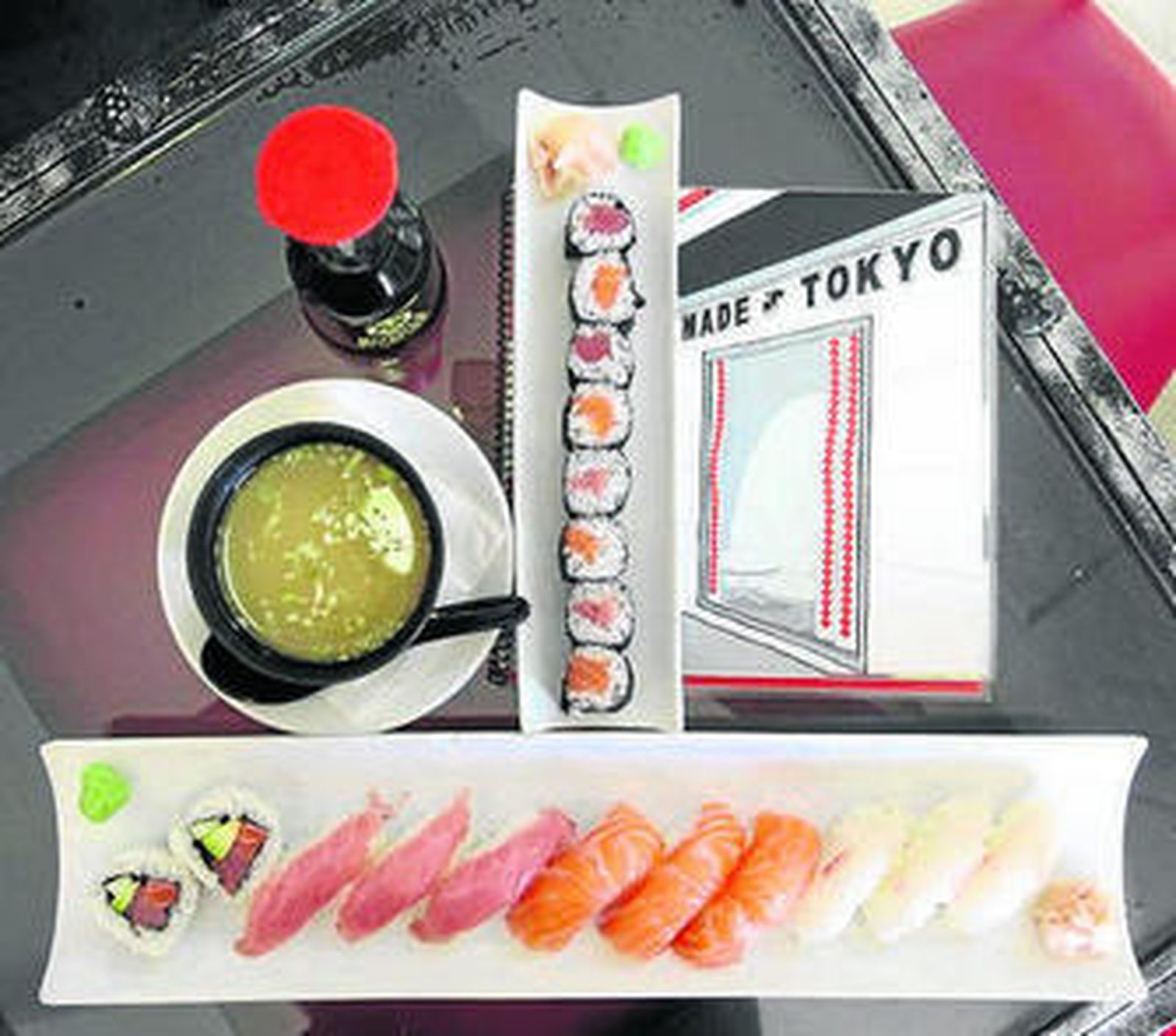 Si se opta por descubrir poco a poco la gastronomía japonesa sin coger un vuelo de diez horas, en el restaurante Made in Tokyo podrá degustar también platos como el okonomiyaki,(masa hecha con harina, huevo y repollo y a la que se le puede añadir carne, camarones o queso), la sopa de miso (elaborada con fondo de pescado y pasta) o el oyako (muslo de pollo con huevo y cebolleta).