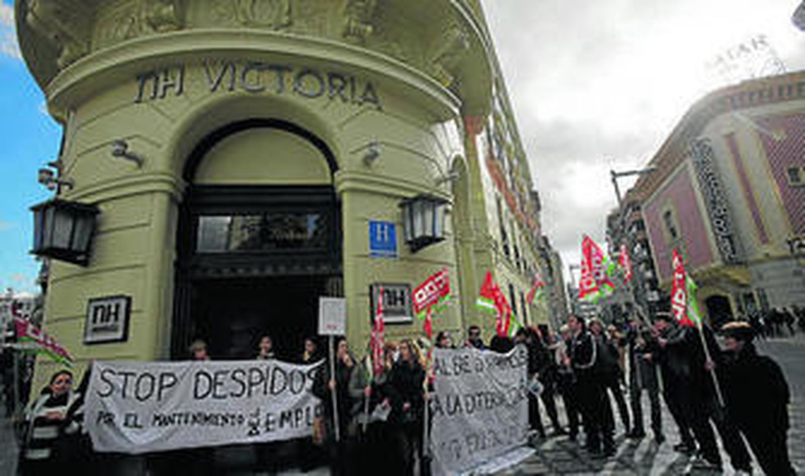 Los trabajadores del Hotel NH Victoria de Granada se concentraron ayer contra la reestructuración parcial que llevará a cabo la cadena de hoteles NH, con la que se pretende despedir a 77 empleados en distintos centros de trabajo de Andalucía. Concretamente, en Granada siete trabajadoras se verían afectadas por los despidos (seis de las cuales son camareras de piso y gobernantas) lo que supone casi el 40% de la plantilla.