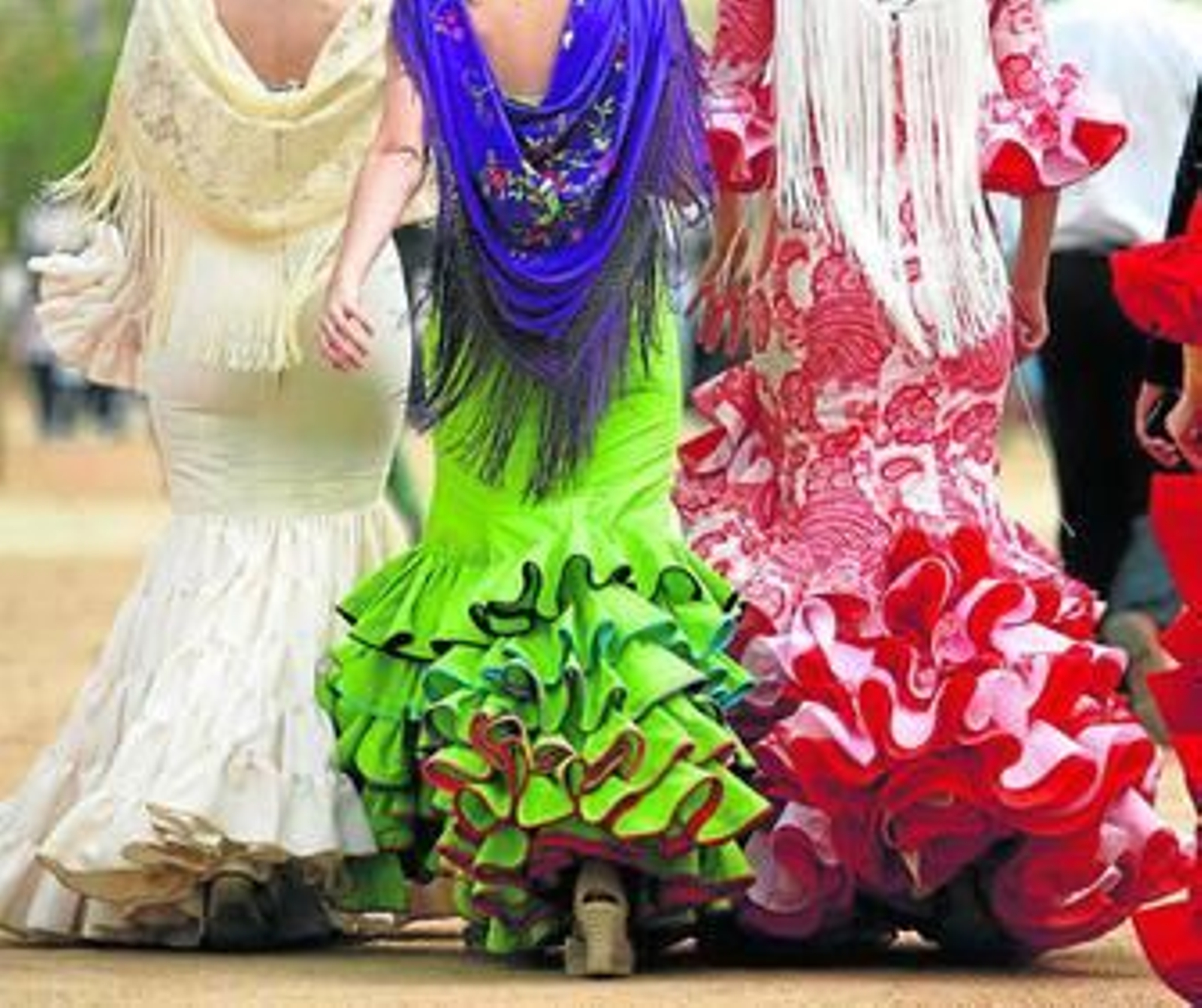 Este año siguen siendo tendencia los trajes cortos por la rodilla para el día, mucho más cómodos y frescos para soportar las altas temperaturas que se alcanzan en el recinto ferial y en el interior de las casetas. En cuanto a formas, sigue predominando el cuerpo sirena, ajustado hasta la cadera o media pierna y con volantes después.