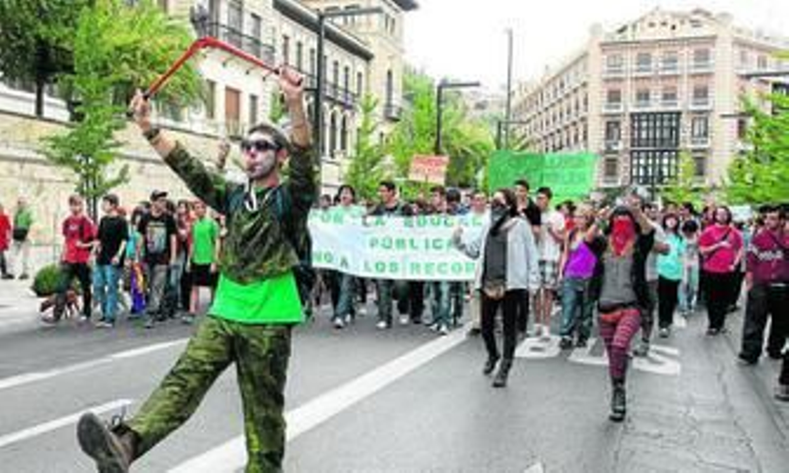 La educación saca músculo. Ayer los estudiantes de la Universidad de Granada hicieron su primer alarde de fuerza por las calles de la ciudad. Más de 2.000 personas -en su mayoría alumnos de la UGR pero no exclusivamente- marcharon en una especie de gran ensayo general contra los recortes en este sector.