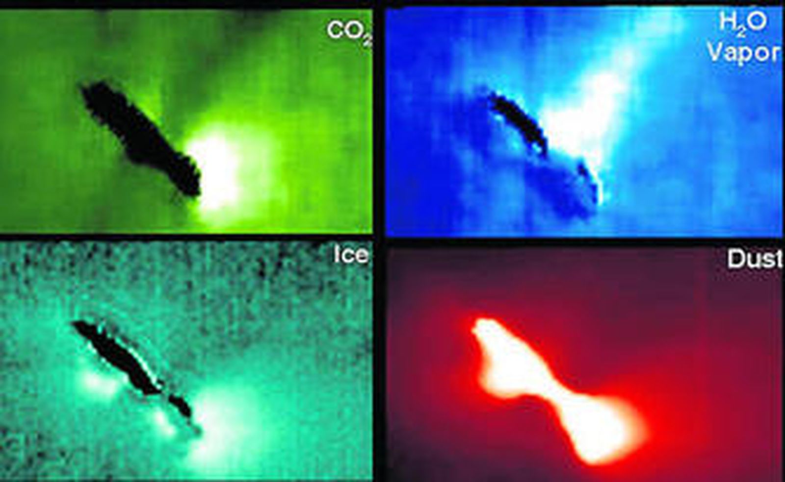 Otro hecho singular es que las producciones de agua y de dióxido de carbono parecen separadas. Esta última está restringida, según se puede ver en las imágenes, a uno de los extremos, de apariencia muy rugosa. A su vez, el agua parece proceder de la 'cintura' del núcleo, de una zona suave y sin rugosidad. Y esa descripción permite plantear algunas preguntas interesantes, destinadas a relacionar lo que podemos observar desde Tierra con el origen y formación de los cometas: ¿por qué la región de la que procede el dióxido de carbono está tan fría -ya que no se observa sublimación de agua- si está expuesta al Sol?, ¿es la rugosidad tan importante?, ¿procede el agua realmente de la 'cintura' o lo que se 've' se debe a efectos térmicos y dinámicos en la coma? Y si procede de la cintura, ¿cuál es la justificación para esa composición heterogénea en un cuerpo tan pequeño? Estoy seguro de que los artículos que se publicarán al respecto responderán a esas preguntas.