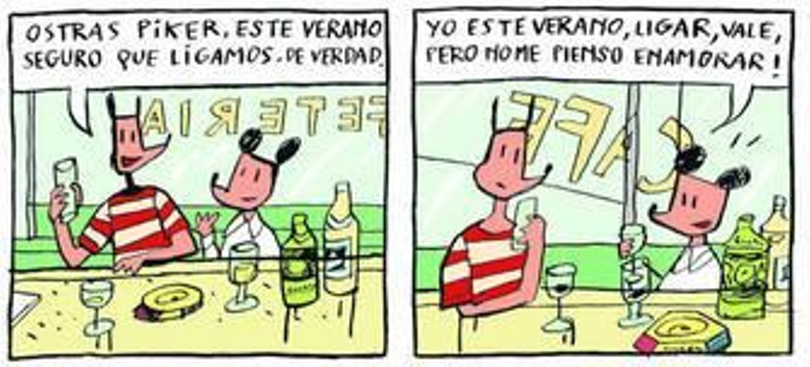 El dibujante rememora su etapa en el universo comiquero, donde publicó sus primeras creaciones: "Necesitaba enseñar mi trabajo a los demás y lo hice a través de las historietas, porque era el sistema más rápido, barato y esquemático". "Luego me iba por los bares y cambiaba los dibujos por una cerveza, un bocata, una ducha... Cuando se es muy joven, no se tiene un duro. Fueron tiempos de mucha alegría, pero también de confusión. Más o menos como ahora: una panda de amiguetes que se ponen a dibujar todos juntos", añade.