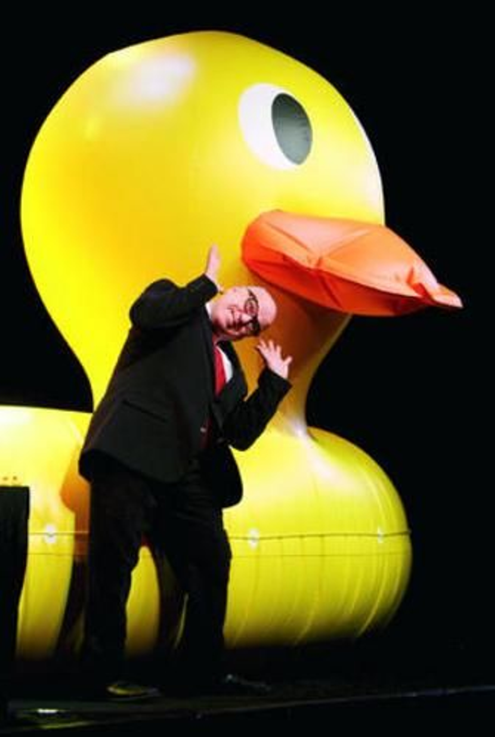 Leo Bassi puede aparecer en El Hormiguero de Pablo Motos e incendiar el plató -como hizo la semana pasada- o analizar el paso del tiempo de un modo poético. Esta segunda faceta será la que muestre en Utopía, pues para el italiano "es necesario recuperar la suavidad poética del tiempo en detrimento de su carácter inmediato en la era de la tecnología". Todo ello tendrá lugar en un escenario espacialmente ocupado por un pato de goma gigante, "como símbolo de la lucha contra el hundimiento, de una forma eternamente simpática, alegre, pacífica".