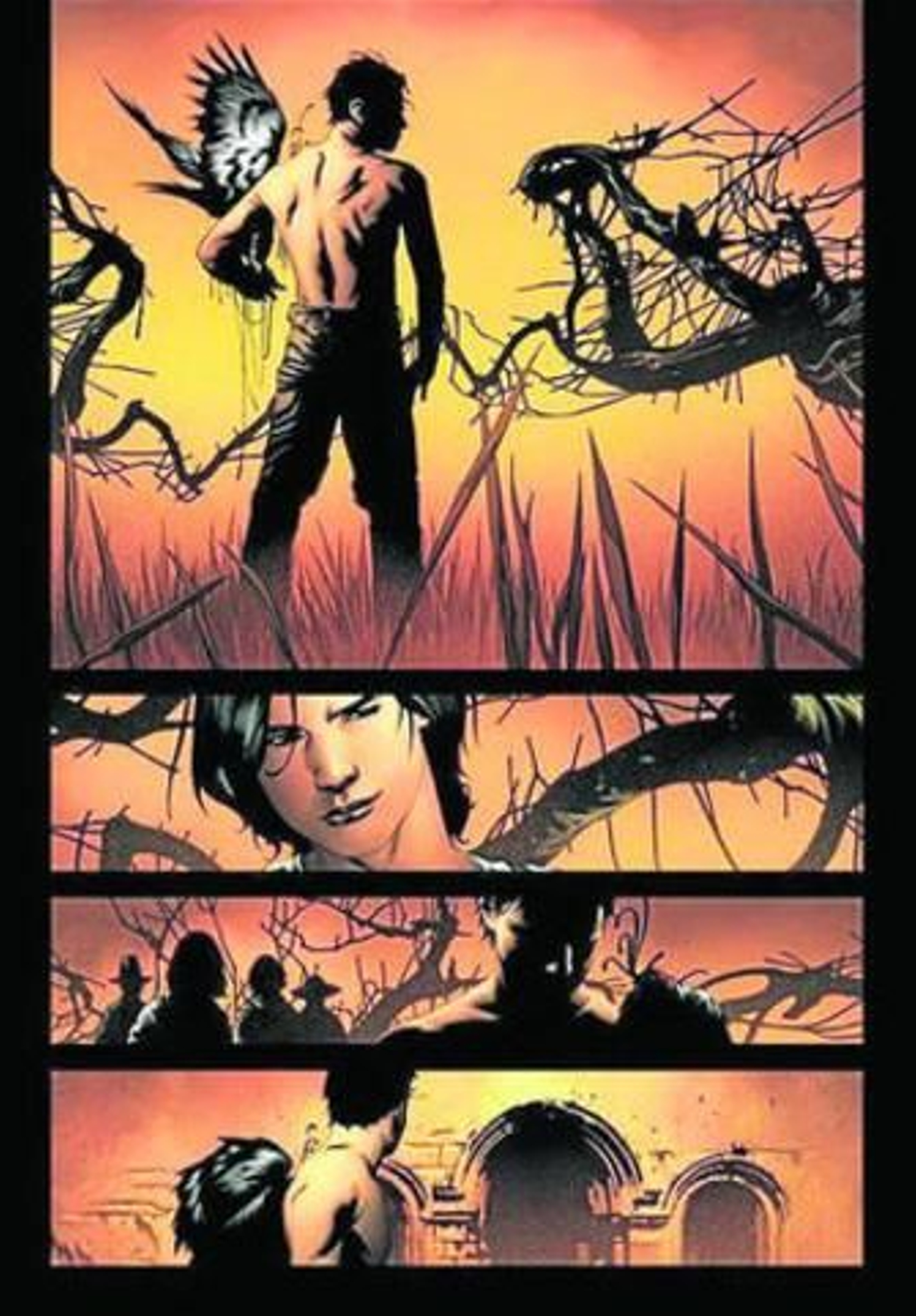 Sea como fuere, a pesar de los guiños a Sergio Leone o William Shakespeare, dos autores no tan disímiles como cabría pensar, no creo que ningún lector se llame a engaño: La Torre Oscura se erige a partir de los bosquejos de estos dos arquitectos: J. R. R. Tolkien y Howard P. Lovecraft. El nudo argumental principal es hasta cierto punto previsible, no voy a discutirlo; la diferencia está en los detalles y, en esta saga, abundan los apuntes inquietantes, las sugerencias intrigantes, los pasajes resbaladizos, las pozas profundas. Por si no bastara, la extraordinaria labor gráfica logra que olvidemos cualquier debilidad del guión. Los cuatro volúmenes ilustrados por Jason Lee, en concreto, se benefician de una muy peculiar y oportuna atmósfera onírica. En los trazos de este artista se reconcilian el peso del mundo y su evanescencia, el rugido y el susurro, el mazazo y la caricia. Para Jason Lee, el entramado argumental es un punto de partida, cuando no una simple excusa, para ponerse a prueba y -como El Bosco en sus cuadros- ver cuánto es capaz de imaginar.