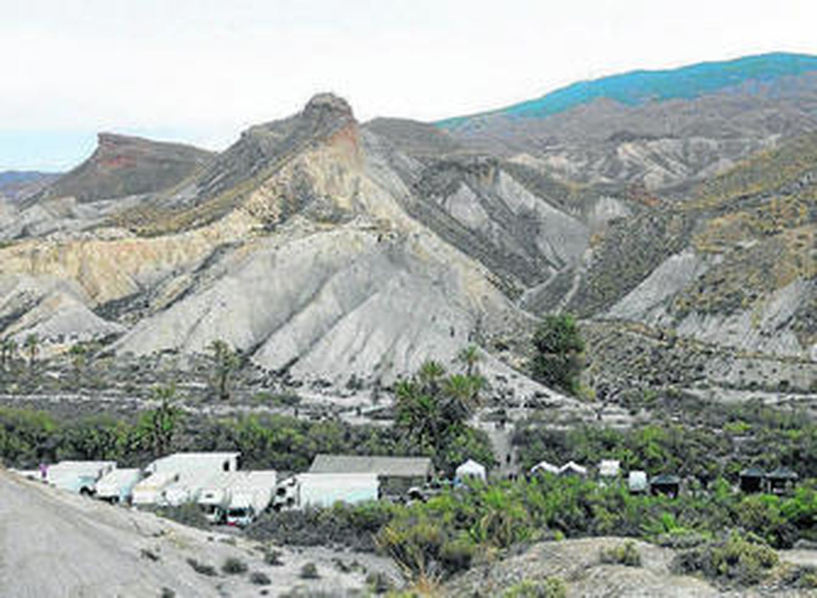En la zona de la gasolinera de Tabernas, en la Venta Alfaro había ayer una gran carpa preparada para la comida de las personas que trabajan en la película. Había mucho movimiento de vehículos y muchos camiones. Muy cerca se estaba comenzando el rodaje de una película que dejará mucho dinero en Almería, ya que serán casi cuatro semanas las que estén en esta tierra, antes de marchar a Fuerteventura.