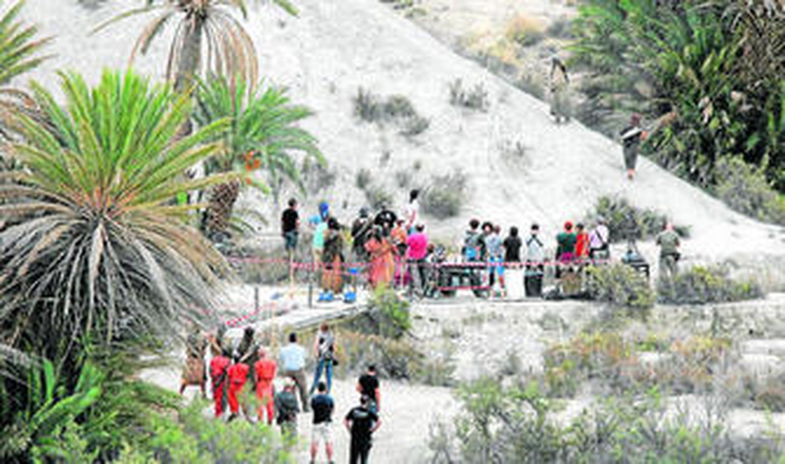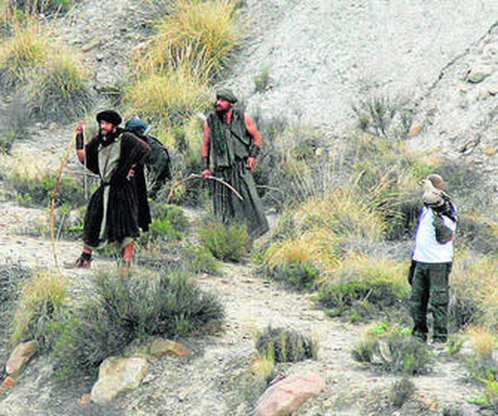 La escena rodada ayer enfrentaba a un grupo de guerreros con los hombres de Moisés por las montañas cercanas al 'Oasis' del Cautivo de Almería