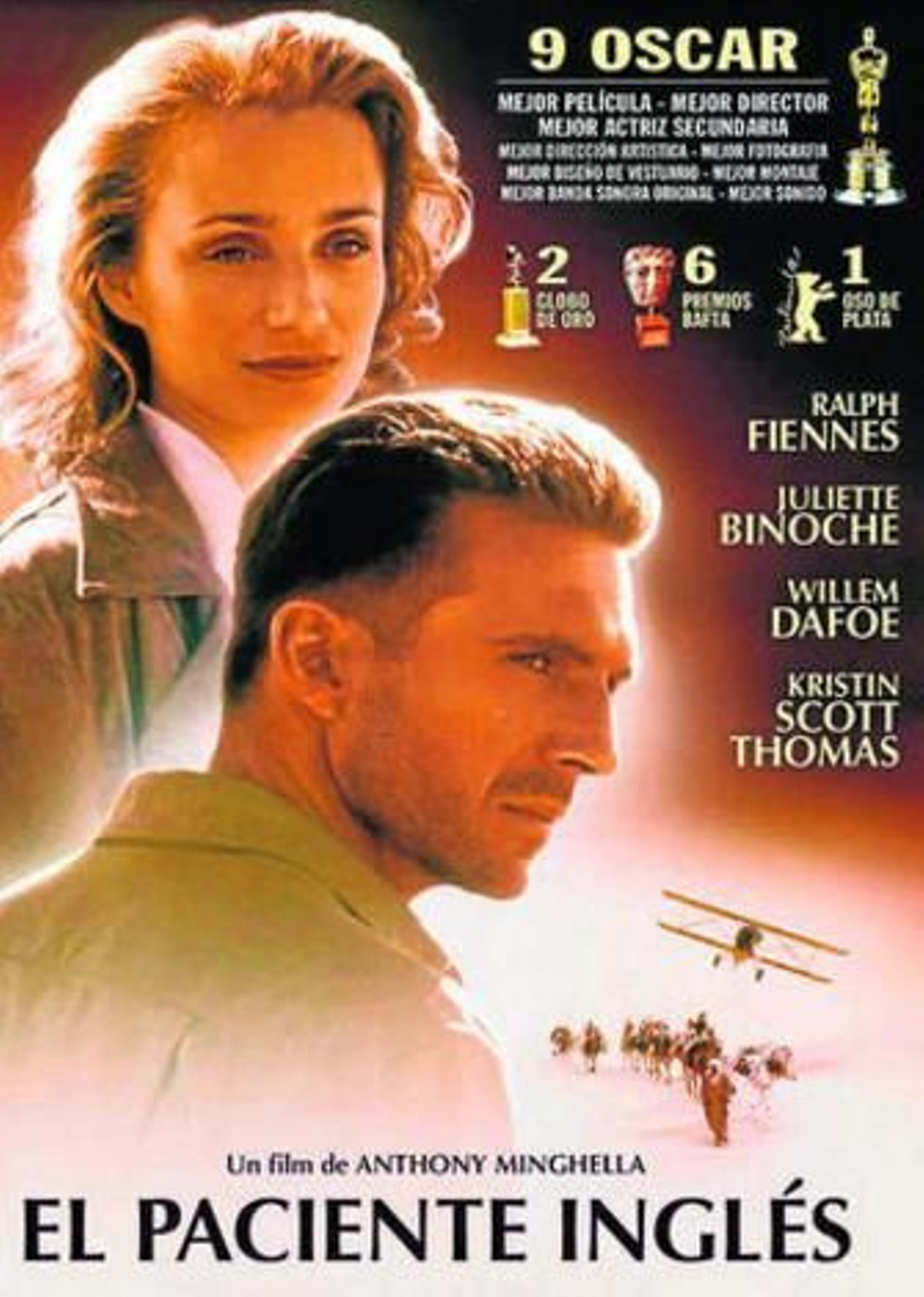El paciente inglés es una película clásica, romántica, intensa y sentimental que nos recuerda el cine del mejor David Lean (Doctor Zhivago, La hija de Ryan) y si Ralph Fiennes está genial en su papel de hombre atormentado y enamorado de una mujer que sabe que nunca podrá tener, Kristine Scott Thomas es la quintaesencia en el cine de la mujer romántica: sofisticada, de porte elegante, fría como el hielo, con unos enormes ojos grises que transmiten melancolía incluso en sus escasos momentos de felicidad completa. Su interpretación en esta película la coloca junto a ese ramillete de actrices británicas cultas, refinadas y llenas de energía e inteligencia: Vivian Leigh, Deborah Kerr o Emma Thompson.