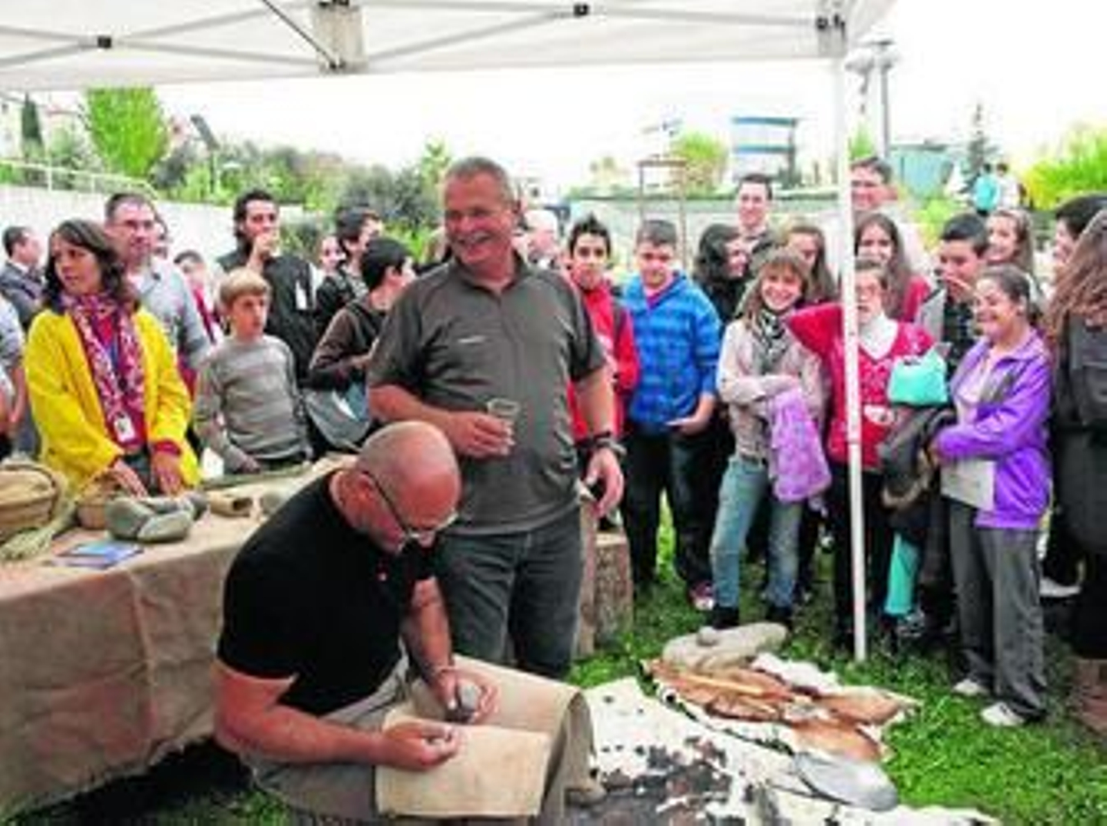 Desde la colosal pieza de granito, traída expresamente desde el Valle de la Serena en Badajoz, hasta las herramientas de sílex para tallarla, no faltó ningún detalle. Para izar un menhir (algunos de ellos superan incluso las cien toneladas) de la forma en la que los hombres de la Prehistoria lo hacían, es necesario moverlo a base de rodillos y después ponerlo en vertical y hacerlo caer sobre un agujero. Hace falta una técnica sofisticada y una absoluta organización. En la mañana de ayer, como el propio Carrión explicó, comenzó la primera fase: los participantes tiraron de él transportándolo sobre rodillos de madera que rodaron sobre troncos de cedro libanés tirando de tres cuerdas. A lo largo de los dos próximos meses los visitantes podrán seguir en directo los trabajos de instalación hasta que el menhir pueda lucir por fin de pie en el Parque de las Ciencias.