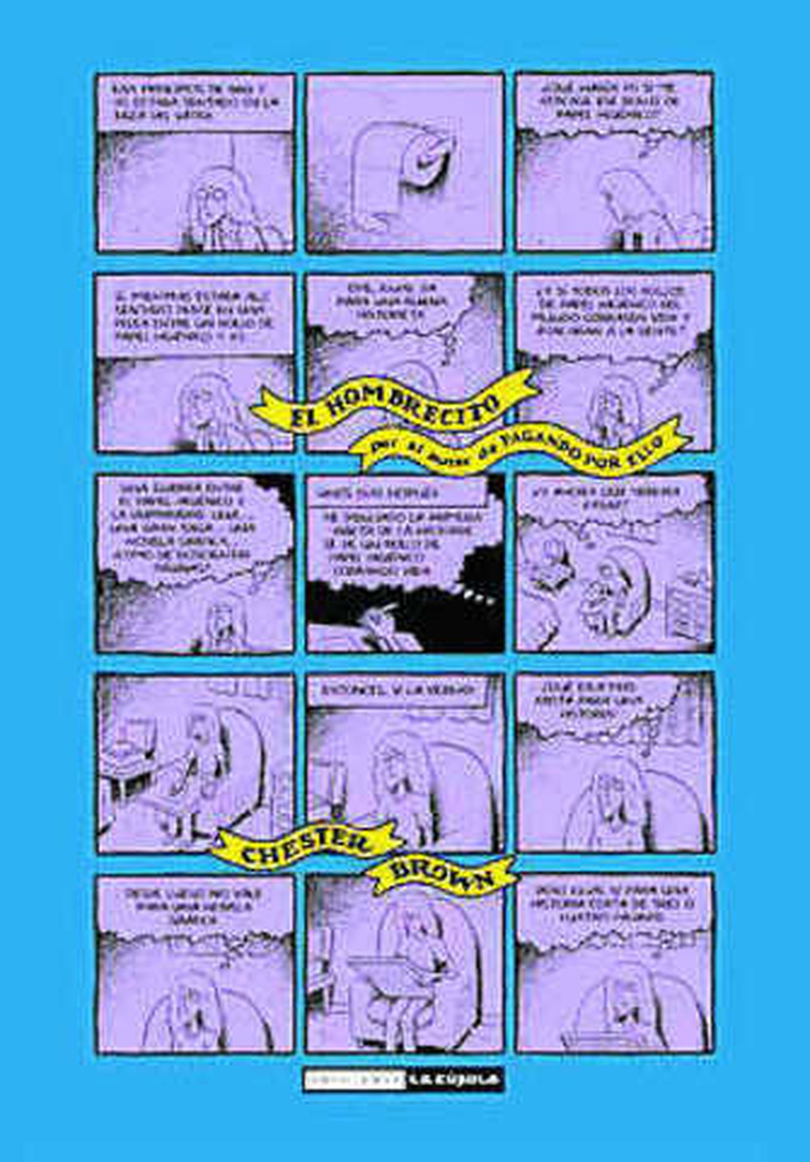 En 2011, recibí con ansia otra novela gráfica editada por La Cúpula, Pagando con ello, una desapasionada mirada al mundo de la prostitución que suma lo mejor de dos de los extremos ya exhibidos: la confesión y el ensayo. Y hace apenas unos días he leído Elhombrecito (La Cúpula, 2013), compilación de historietas cortas firmadas por el dibujante entre 1980 y 1995, más jugosas notas textuales del propio Brown. Solo por El gemelo, adaptación de un antiguo cuento gnóstico sobre la iluminación del Jesucristo niño, el tomo merece ya la pena, pero es que se trata de un verdadero poemario lleno de joyas como Helder, Mostrando Helder, Knock knock o Mi madre era una esquizofrénica. El hombrecito muestra la evolución de uno de los historietistas fundamentales de nuestro tiempo, es un delicioso testimonio de los años en que Brown buscaba voz y timbre y contiene no pocos hallazgos. Claro está que en el camino encontró la voz, vaya si la encontró.