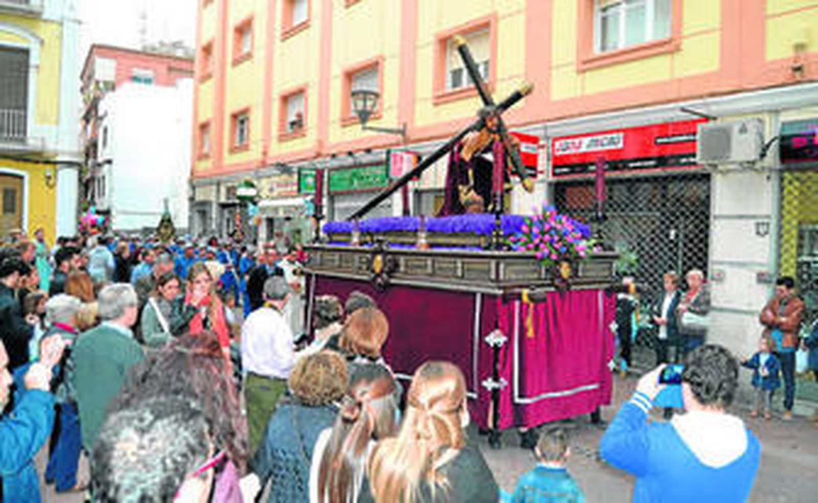 Una tarde espléndida, con cielo raso y libre de nubes, como está acompañando en toda la Semana de Pasión, invitó a centenares de fieles a acercarse al Santuario de Nuestra Señora de la Cabeza para, a plena luz del día, contemplar la salida del Cristo de Pasión y María Santísima de la Amargura.