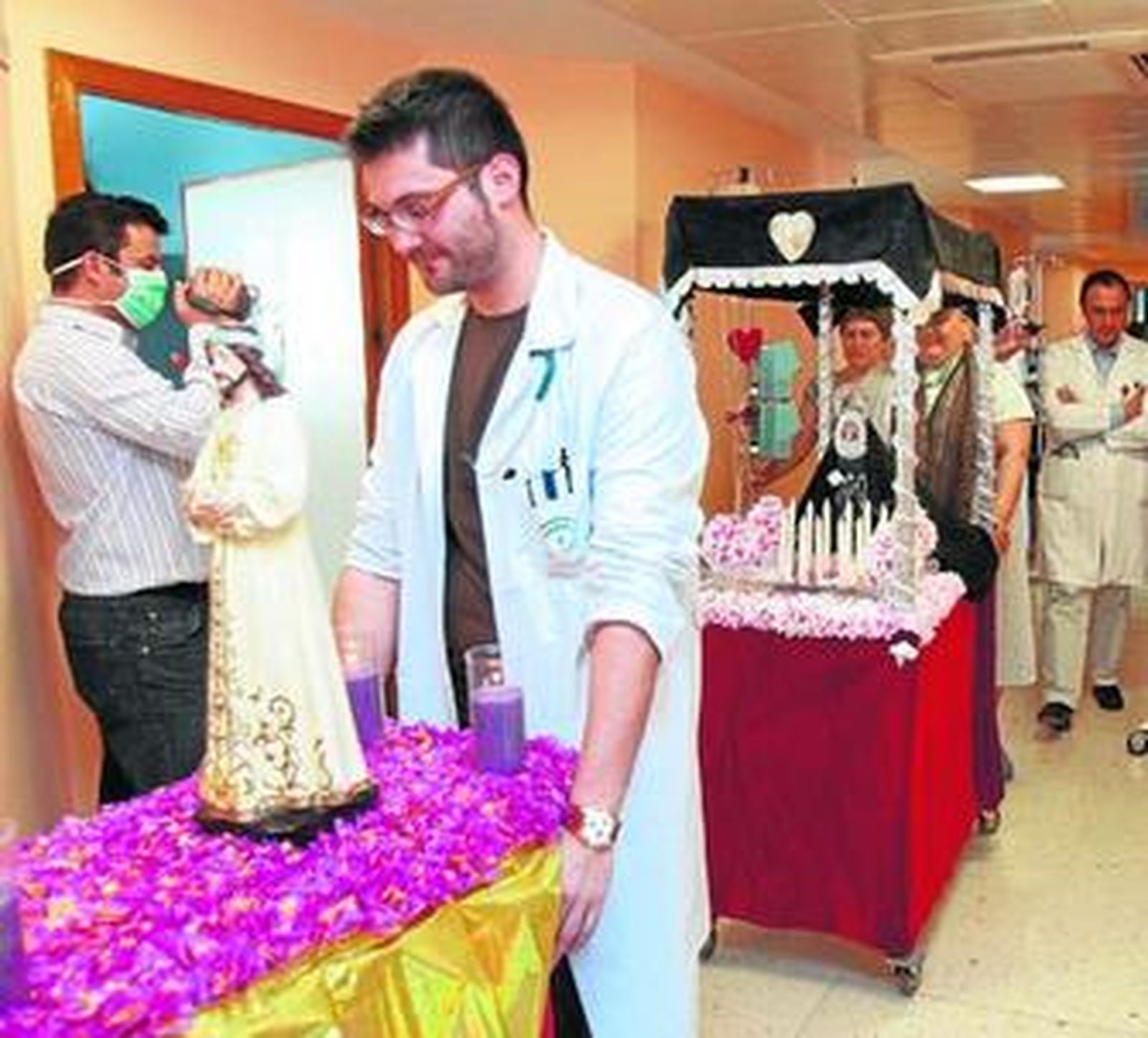 La salida procesional de los pasos fue el Martes Santo. El personal de enfermería cedió sus carritos, sobre ellos, las dos jóvenes colocaron los pasos que dispusieron incluso de acompañamiento musical. Ana Belén toca la flauta traversa y fue la encargada de poner unas notas musicales. Pero a una procesión no puede faltarle quien le cante una saeta, a estas imágenes tampoco. La psicóloga de la planta, Soledad de Linares, destaca la importante labor que han desarrollado estas dos chicas, que han conseguido "que todos puedan disfrutar de la Semana Santa, aunque estén hospitalizados".